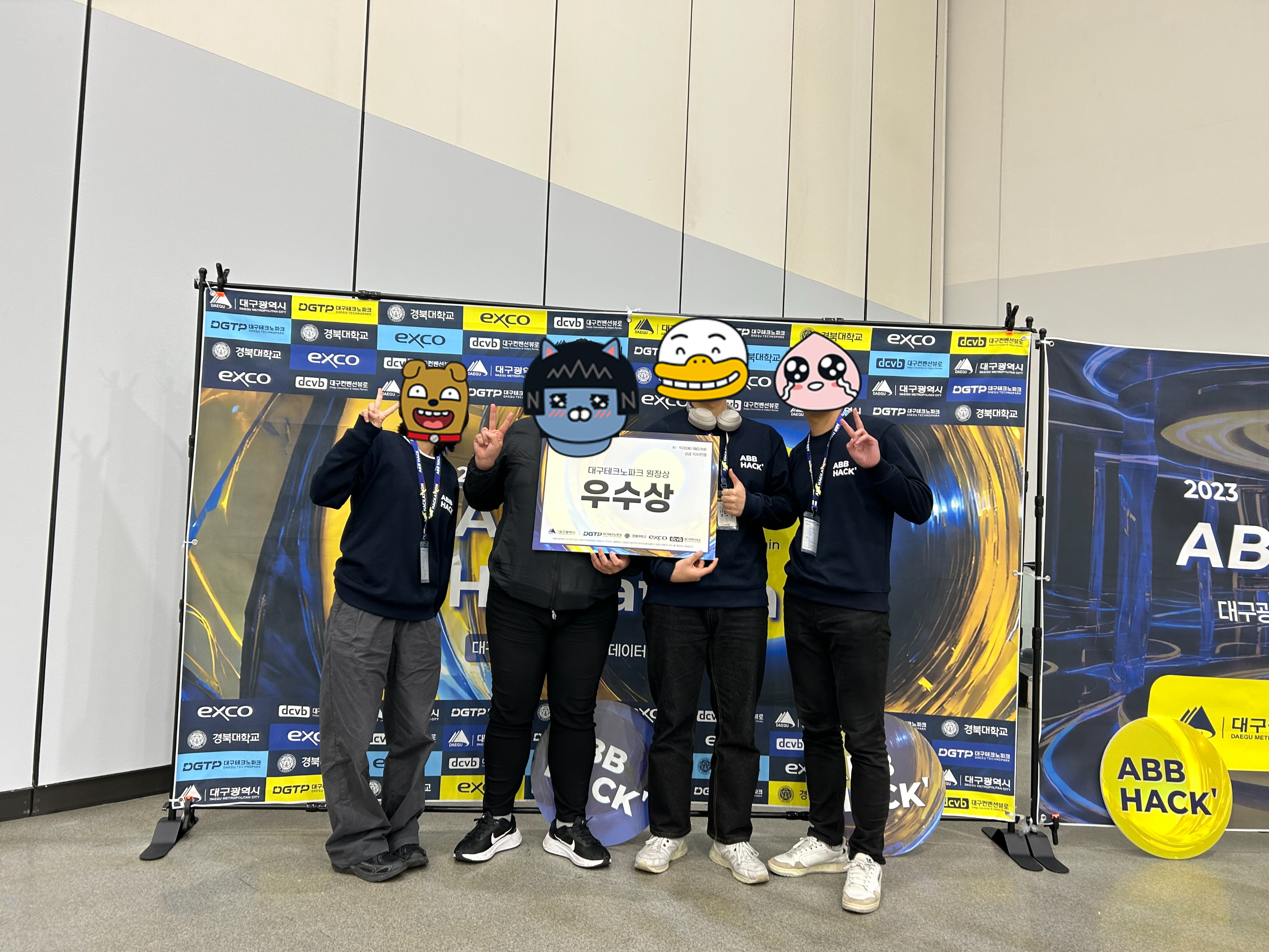 우수상이라.. 기뻐하기도 애매했고 슬퍼하기도 애매했다. 솔직한 심정으론 최우수상을 기대했는데 프로젝트 완성도에서 점수를 깍이고 밀린 거라 추측한다. 그래도 수상을 한 건 사실이었기에, 팀원들과 수상의 기쁨을 나누었다.
